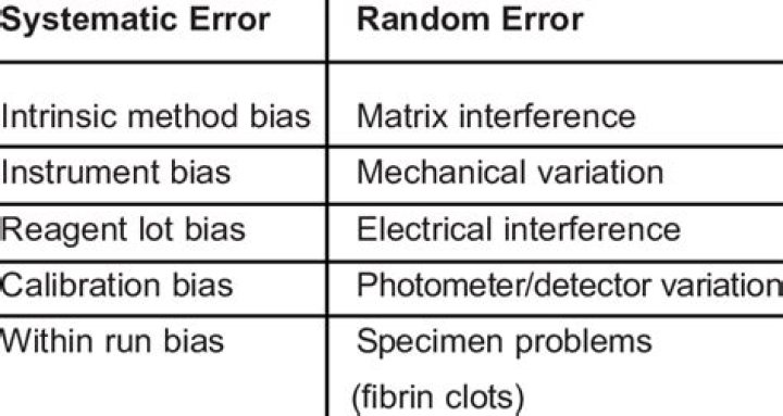 Systematic errors primarily influence a measurement’s accuracy. Typical causes of systematic error include observational error, imperfect instrument calibration, and environmental interference. For example: Forgetting to tare or zero a balance produces mass measurements that are always “off” by the same amount.