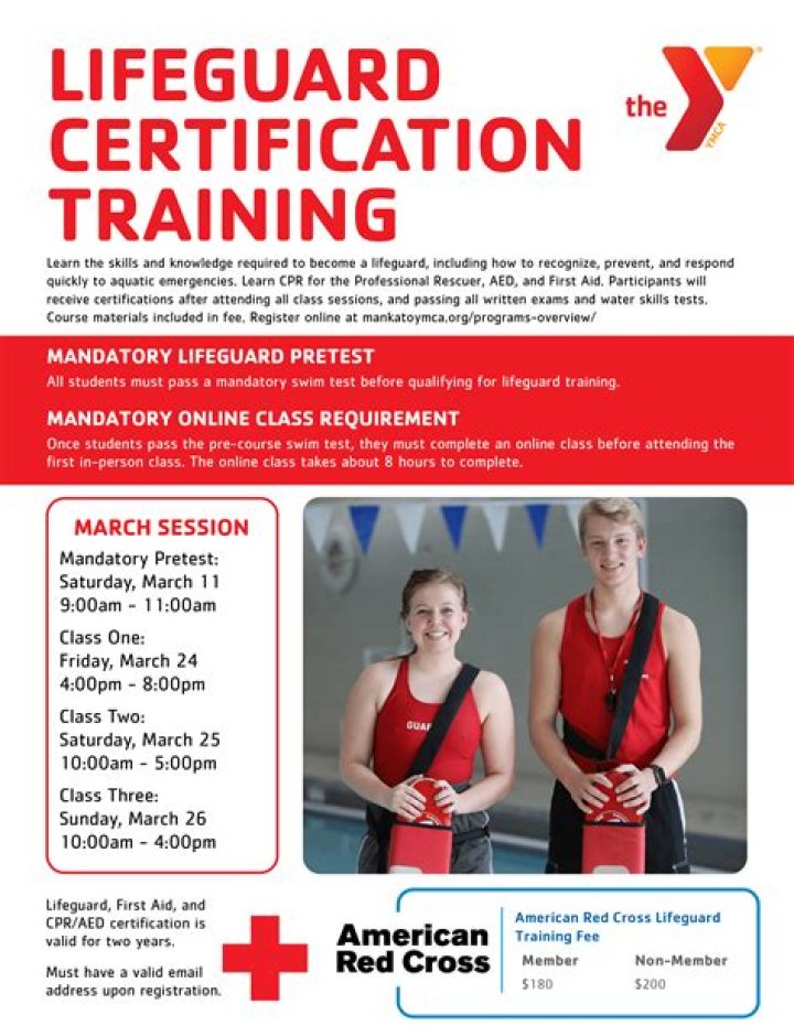 Lifeguarding Courses and Prerequisites The certification, which includes First Aid, CPR and AED training, is valid for two years upon completion and is accepted nationwide. The American Red Cross is the most respected source for training and certification of this kind.