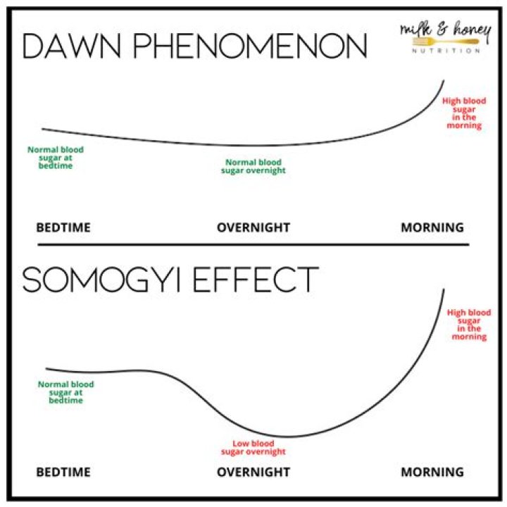 The Somogyi effect can occur any time you or your child has extra insulin in the body. To sort out whether an early morning high blood sugar level is caused by the dawn phenomenon or Somogyi effect, check blood sugar levels at bedtime, around 2 a.m. to 3 a.m., and at your normal wake-up time for several nights.