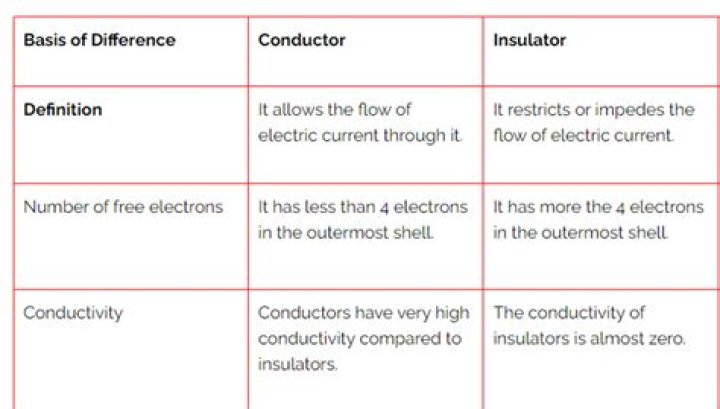 ConductorsInsulatorsA conductor allows current to flow easily through it.An Insulator doesn’t allow current to flow through it.Electric charge exists on the surface of conductors.Electric charges are absent in insulators.What is the difference between conductor and insulator for Class 6?