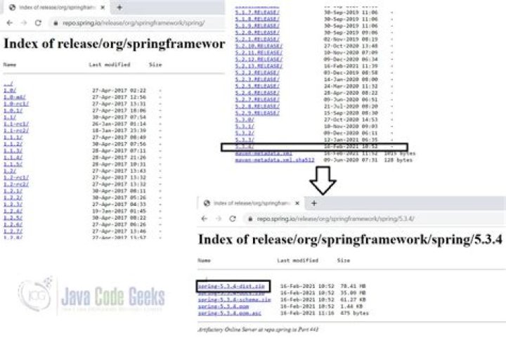 So, in order to download the Spring framework, just go to the maven central website and enter the groupId, artifactId, version, and classifier which you can get from the official Spring website and it will then present the download link.